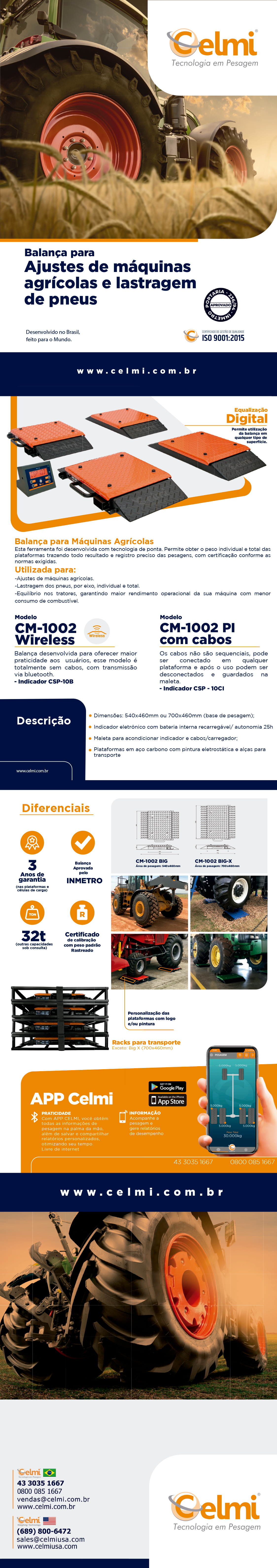 Com o App da Celmi sua empresa simplifica o ajuste de lastragem, índice de patinagem e avanço das suas máquinas agrícolas. Ganhando eficiência, economizando combustível e otimizando resultados com a tecnologia de pesagem portátil líder no mercado.